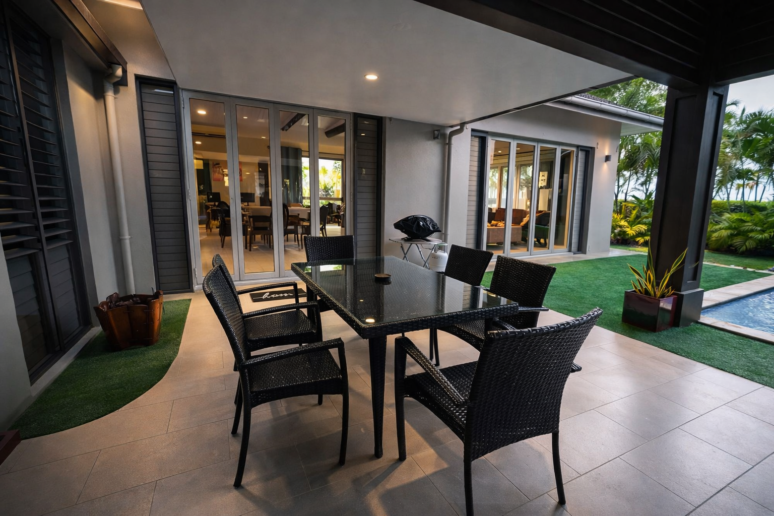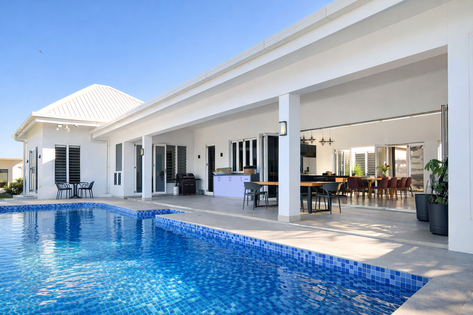 Outdoors, guests can enjoy a large private swimming pool, BBQ entertaining area, and a pool table, creating the perfect setting for relaxed villa living.