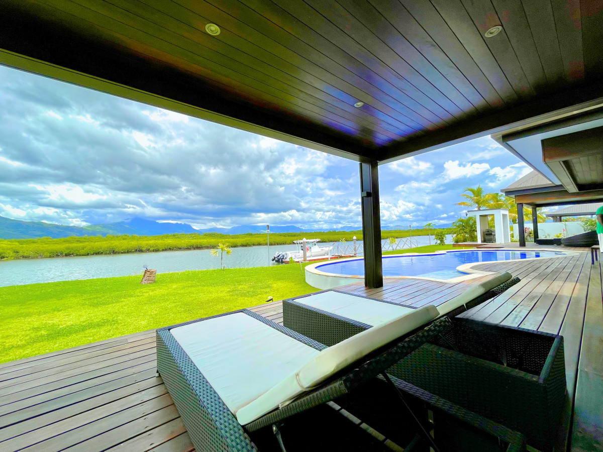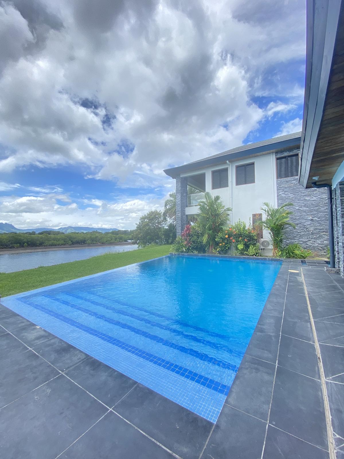 Welcome to Villa 62, your premier destination for a luxurious 4-bedroom retreat in Fiji. Nestled within a lush courtyard, this tropical haven boasts guest suites on each side, offering privacy and comfort. The main house features two master riverfront rooms, providing breathtaking views and indulgent outdoor showers.