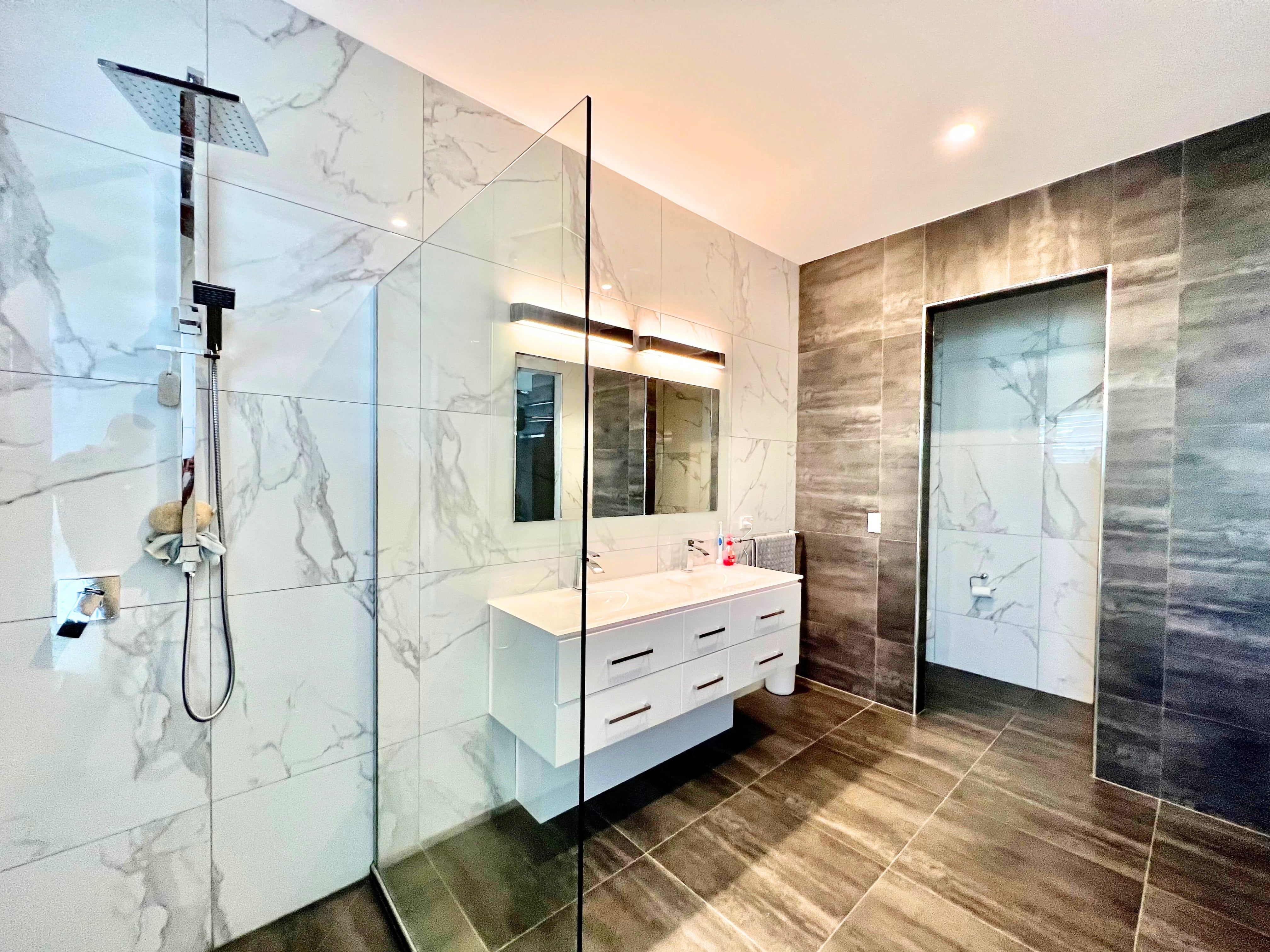 Each room is thoughtfully furnished with modern décor, air conditioning, and plenty of storage, ensuring every guest feels at home. The villa’s numerous bathrooms are well-equipped with high-end fixtures, ensuring a spa-like experience for all.