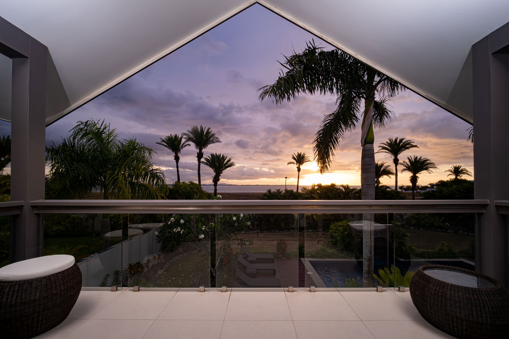 Large upstairs balcony facing the beach, perfect for watching the sunset