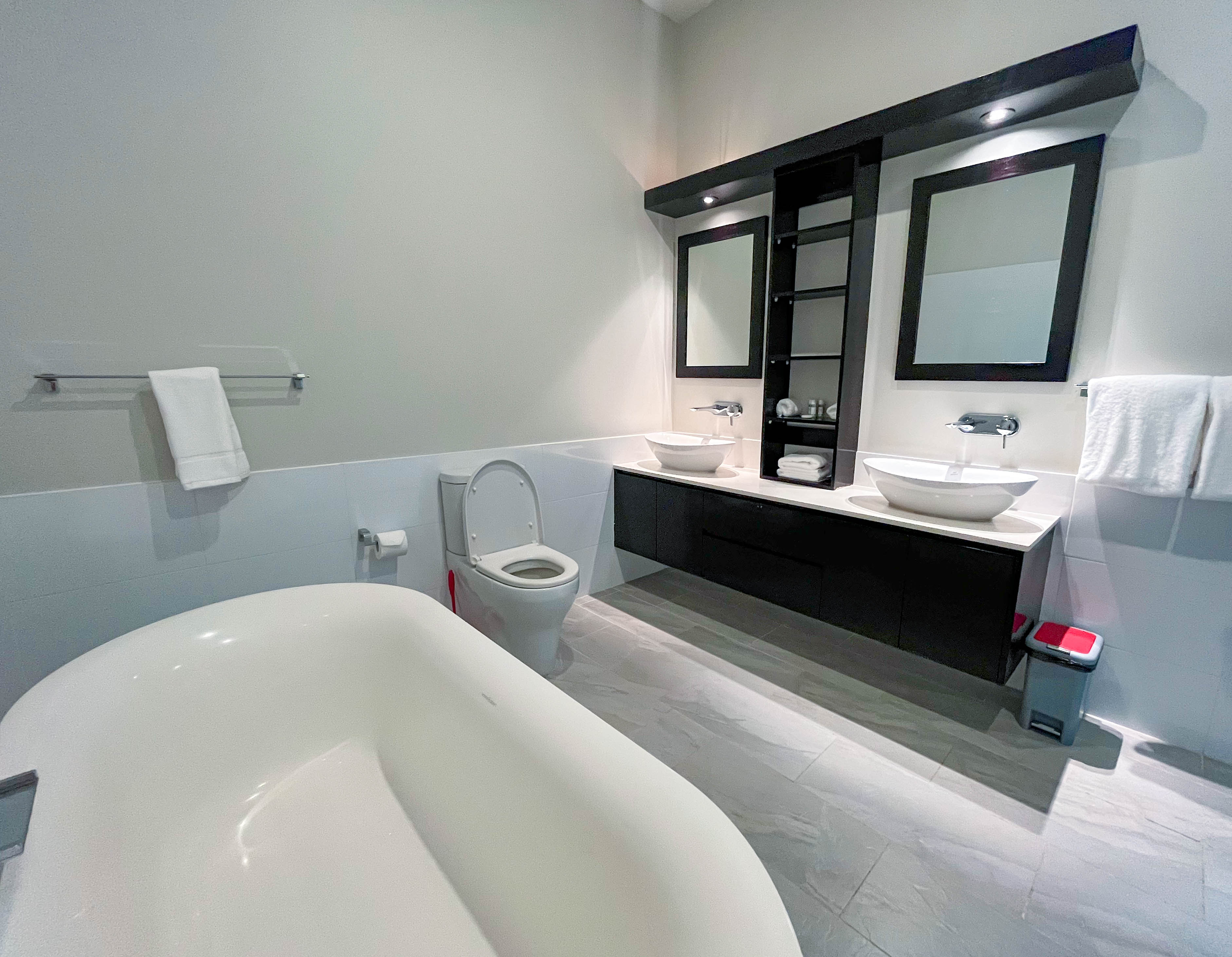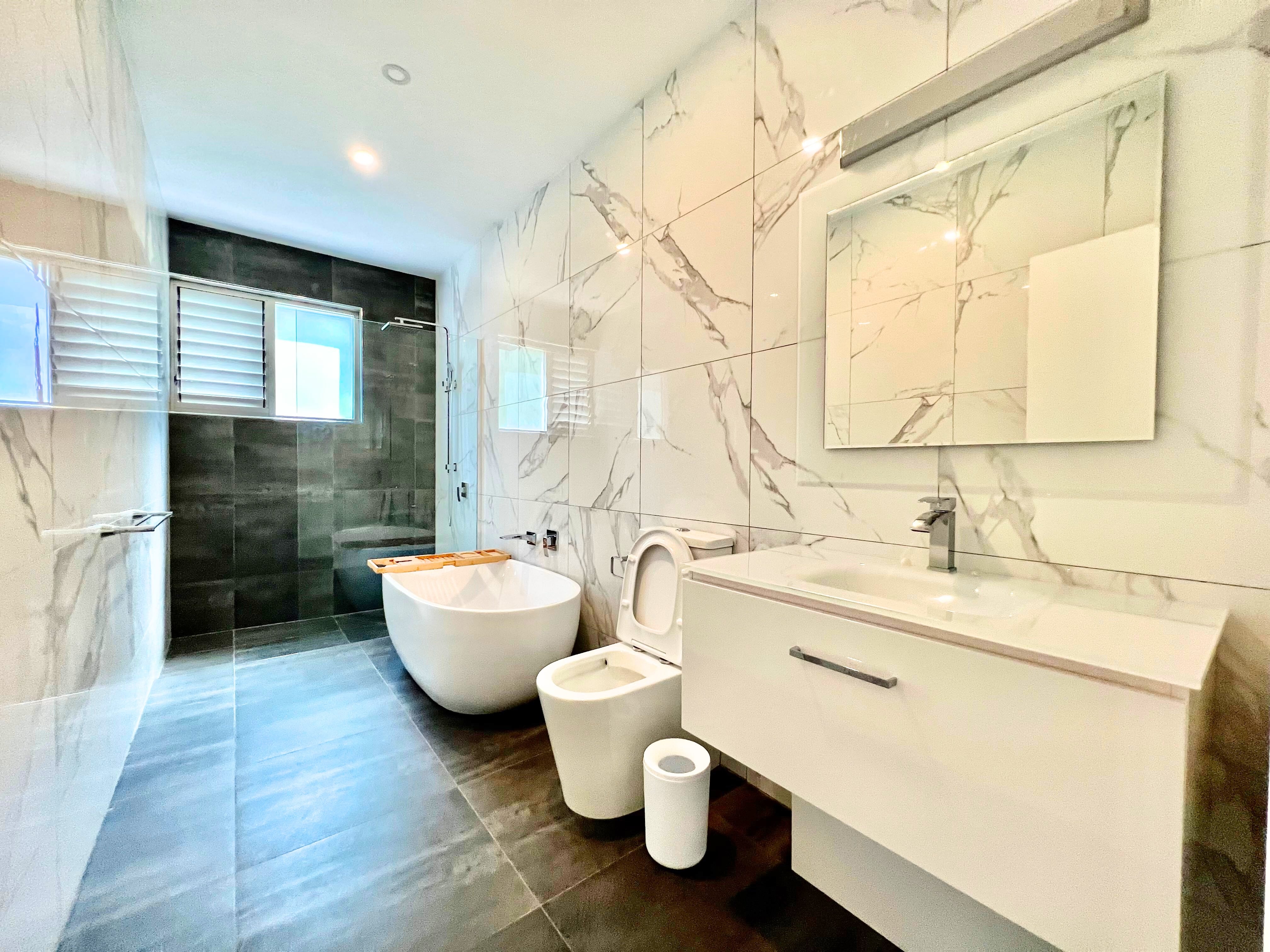 Welcome to Villa 104, an exclusive 5-bedroom haven where contemporary elegance intertwines with spacious luxury. This fully air-conditioned retreat offers a master bedroom with a walk-through wardrobe and ensuite, alongside a variety of uniquely numbered rooms for diverse accommodations
