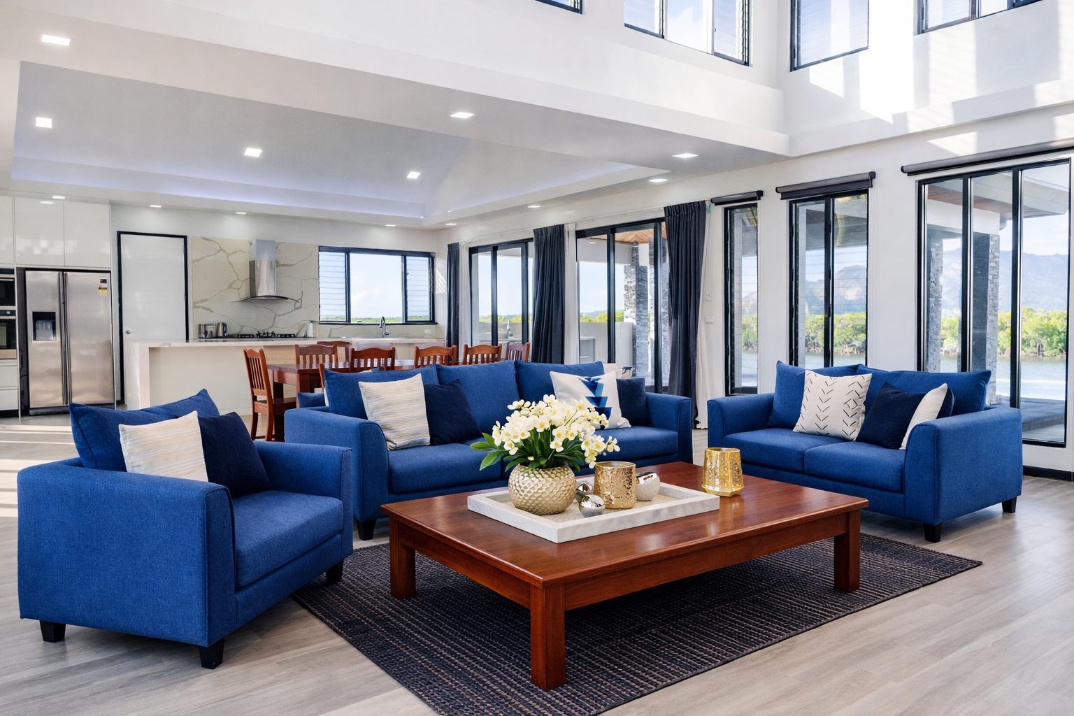 As you step into Villa 91, you'll be greeted by a spacious and tastefully decorated living area, complete with comfortable sofas, a large flat-screen TV, and plenty of natural light.