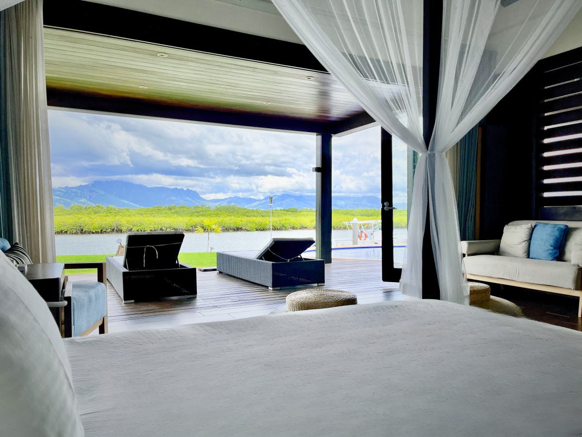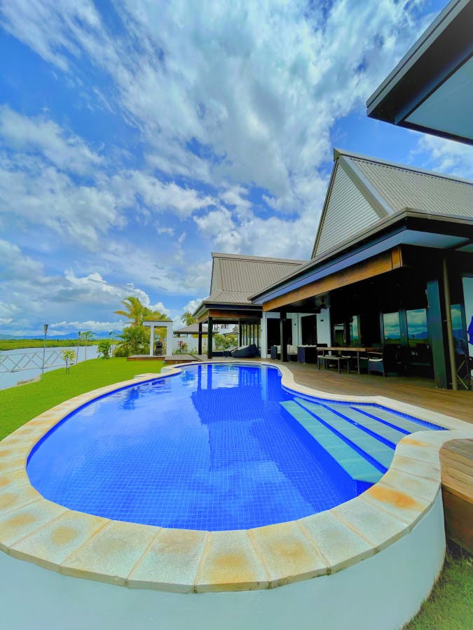 Welcome to Villa 62, your premier destination for a luxurious 4-bedroom retreat in Fiji. Nestled within a lush courtyard, this tropical haven boasts guest suites on each side, offering privacy and comfort. The main house features two master riverfront rooms, providing breathtaking views and indulgent outdoor showers.