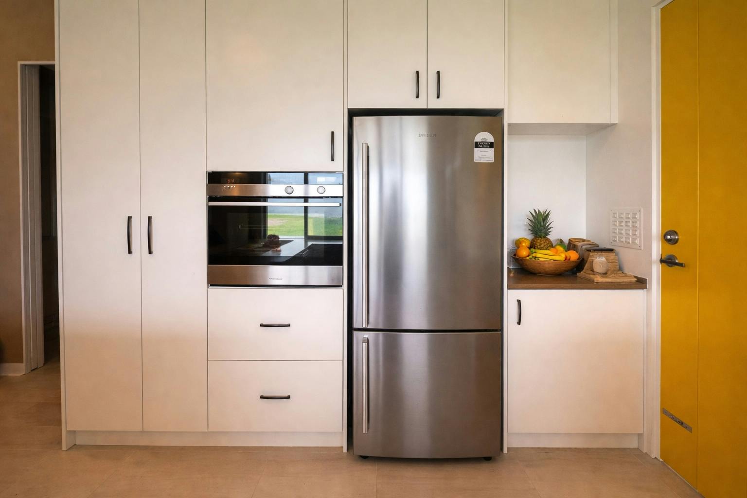 The home features 1 king bedroom with ensuite, plus a sofa bed in the living room that can accommodate two additional guests. The open living space flows into a fully equipped kitchen, making it comfortable for both short and longer stays.